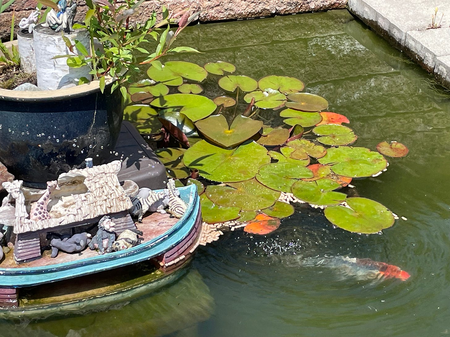 And then there are the plants in my yard. When we moved two years ago, I had to leave behind my herb garden, my peony bed, and my beautiful irises. Most heartbreaking of all was leaving my garden pond with its water lilies and koi fish. One year at the end of the season, my beloved dog, Smooch, had a sushi fest and finished off the fish still in the pond. Yum?